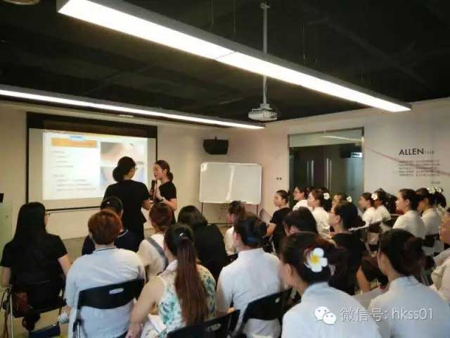 盛世黃玉蘭總監(jiān)為艾倫美容的寶貝們講解項(xiàng)目優(yōu)勢(shì)及專業(yè)知識(shí)